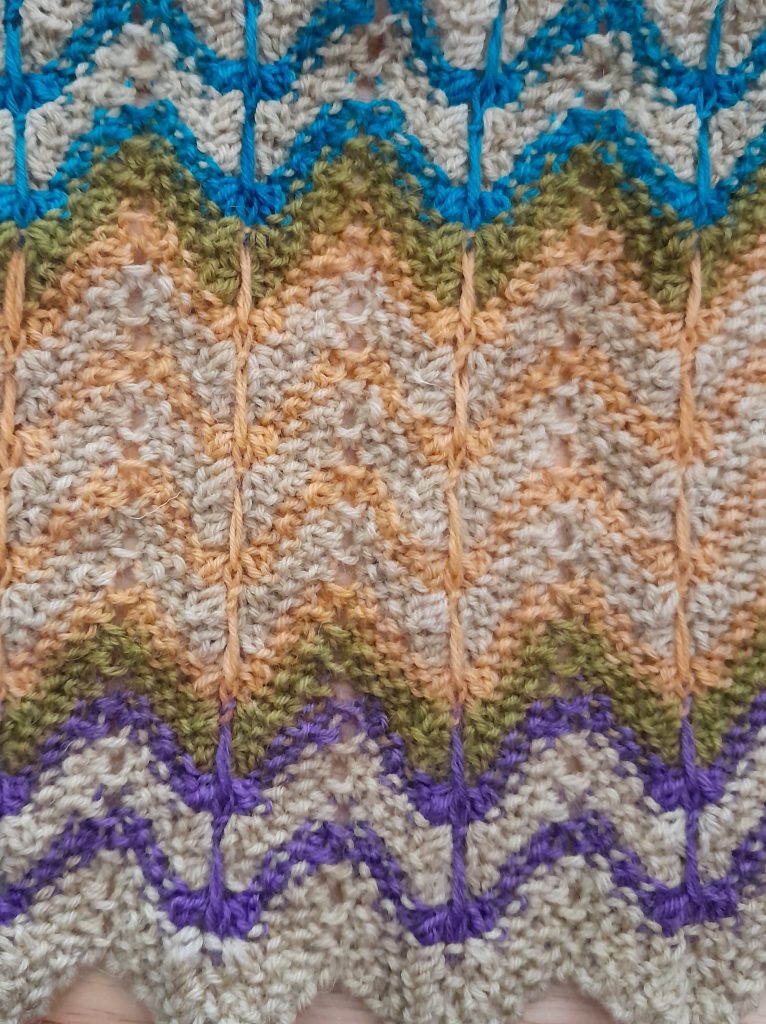 I decided for the Las Cruces Shawl that the “actual” stitch name wasn’t important. I chose the stitch to resemble sand.