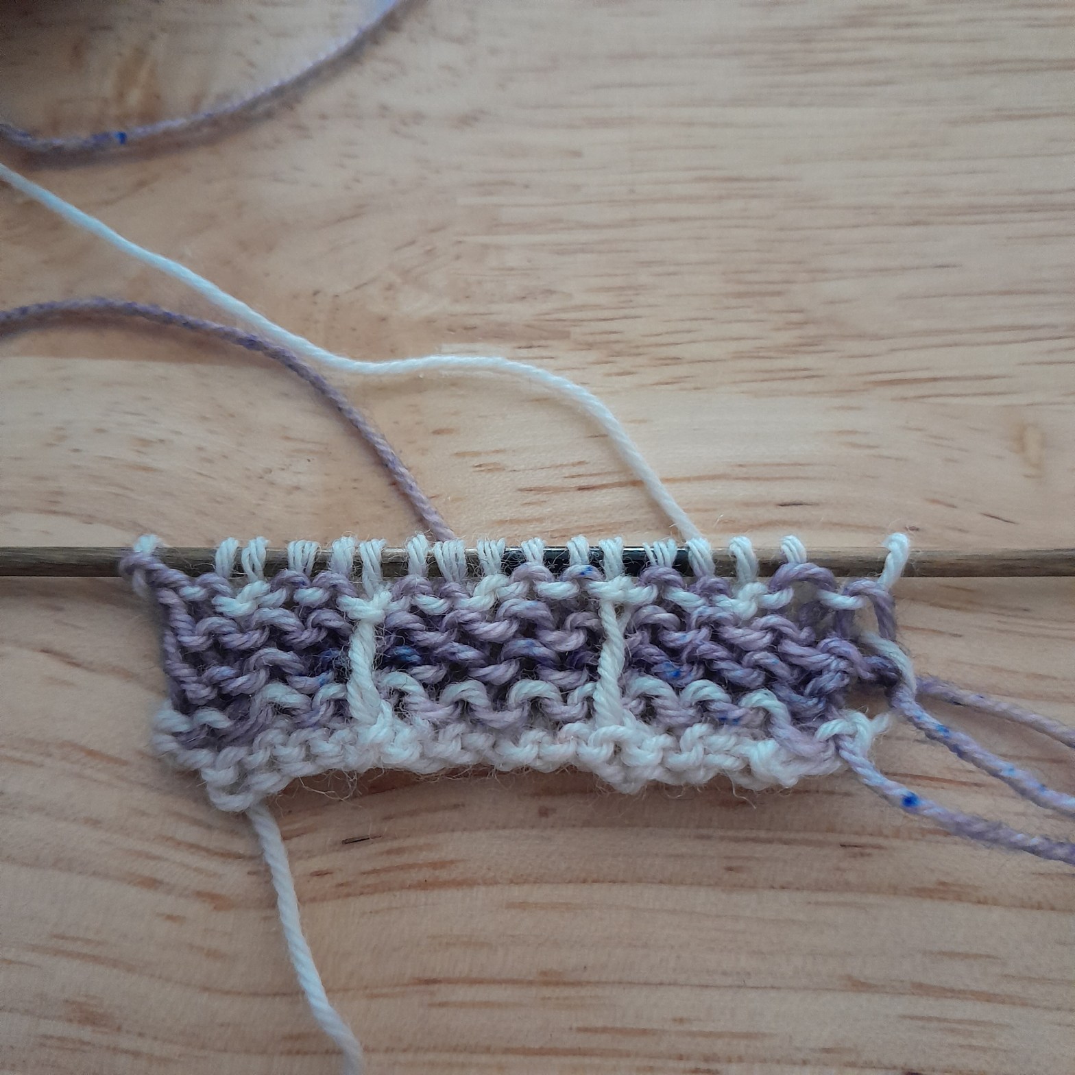 Not quite as reversible as I thought. The missing main color rounds really make it noticeable. The color changes are very obvious on the other side of the knit version. It wasn’t as noticeable in the sample I made real quick, photos above, because the colors were different enough to see the mortar color but close enough to not see the color change issue.