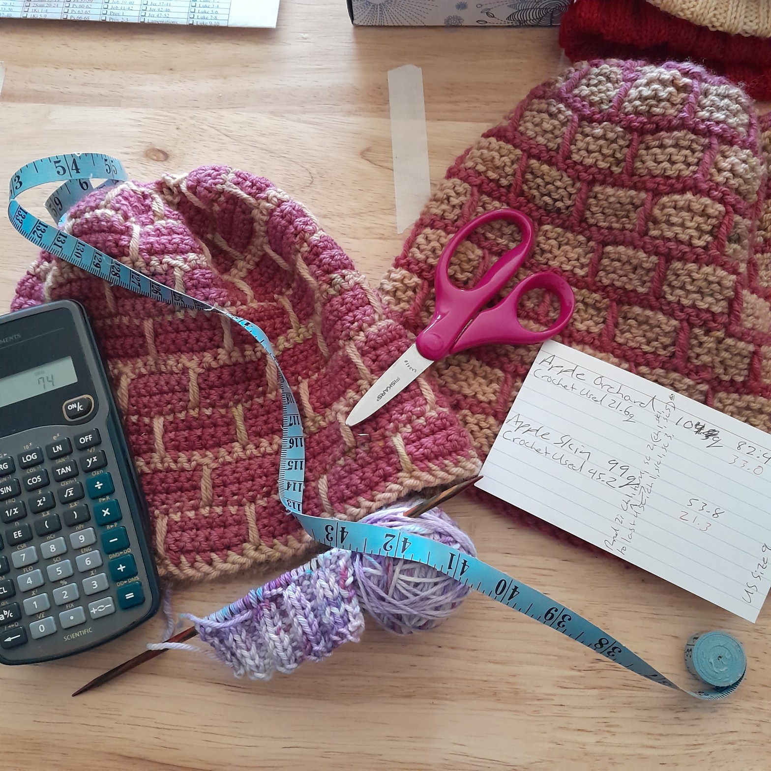 Getting these hats ready to go to the tech editor. Gauge is always part of a part and is minimal basic math. That’s how many stitches and rows or rounds per inch so that you can replicate the work I’ve done and it actually fit.