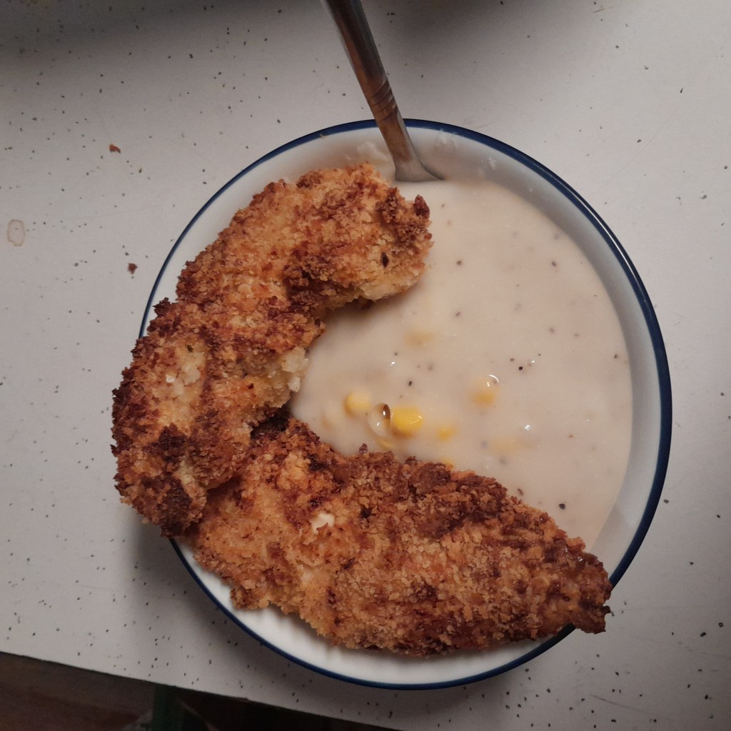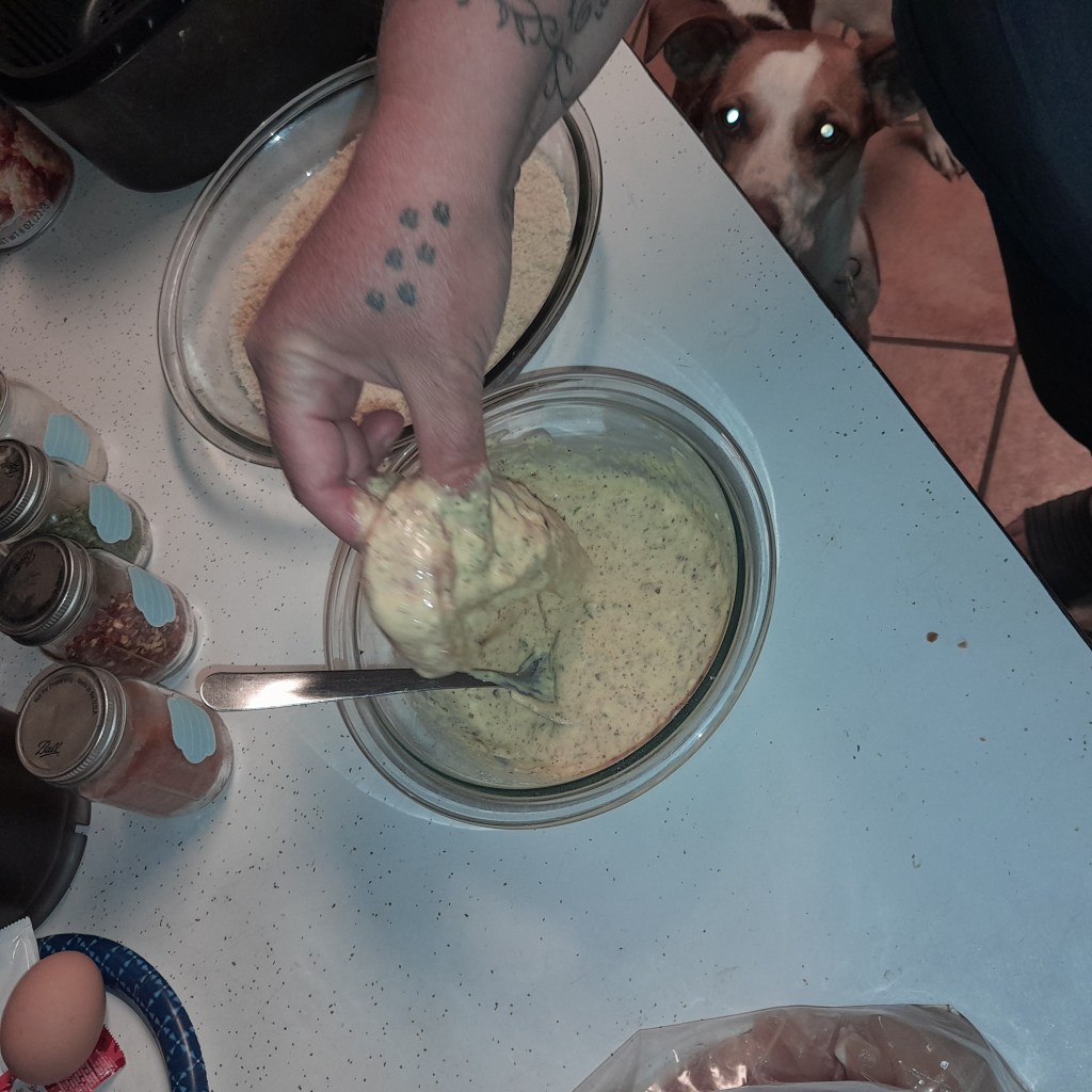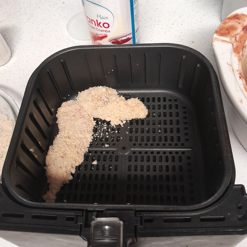 Pour panko crumbs into a shallow dish, like a pie plate.