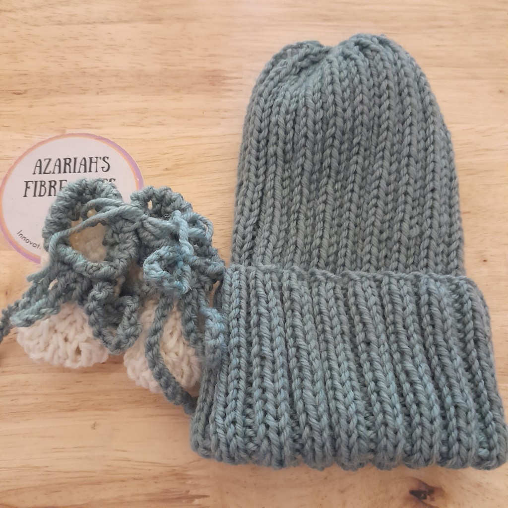 I was recently making hat and bootie sets for the new moms at church and I was using up some scraps from the blanket project for the same purpose. As such I was striping the hats and even the booties. I made all of the hats to be 2 x 2 rib because that is the most practical and will fit the longest.