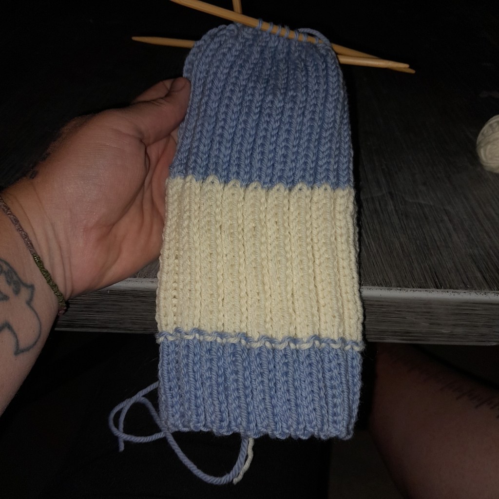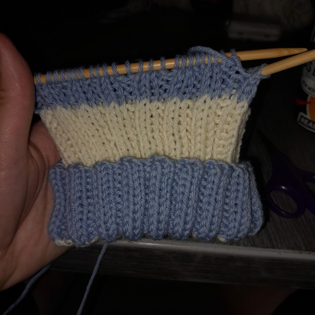 So after all these years and people saying “color change in ribbing needs to be worked in all knits”. I’m here to tell you that it doesn’t. Just work in the pattern and it’ll look fine.