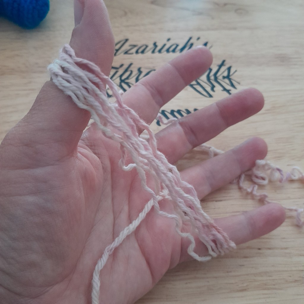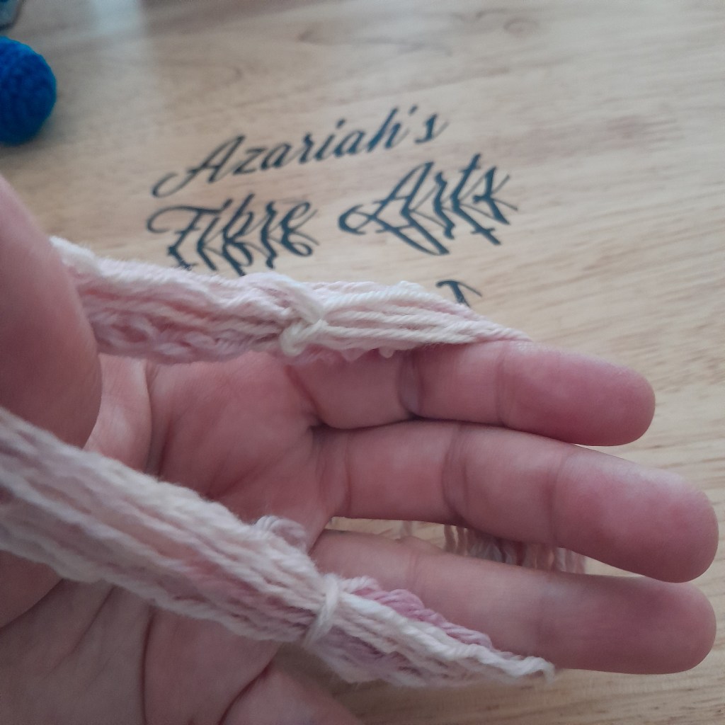 From here you can choose to unravel the entire swatch into a pile or you can begin winding it into a small hank as you unravel. I prefer the former so that I have both hands free to manipulate knots, tangles and fuzzies as I come to them. I think it also gives a more consistent tension on the hank to wind from a pile of freed yarn.