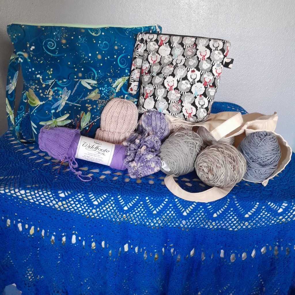 For each of the three scenarios I will share a photo of an example for that situation and talk about bag choice, tools and the project. Choosing a bag first helps you to start getting an idea of the project that will fit inside that bag. Tools are chosen next, more like eliminated, what will fit in your lap in the car, what’s allowed on the plane… And finally the project can be chosen based on the bag size and tools available.