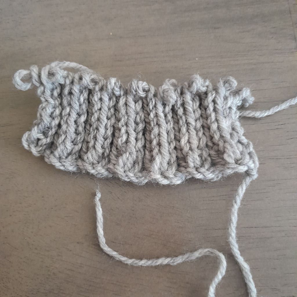 The pattern is 2 by 2 rib. The cast on had the stitches so spaced out that the stretchiness of the rib was non-existent. I decided to work a few more rows before making a decision. Four rows isn’t very many but eight in this gauge is enough to see how this cast on is going to act. Yeah, it didn’t get any better.