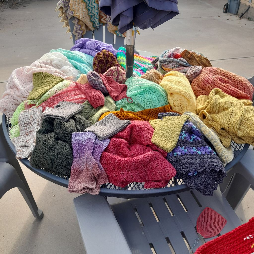 This time I took all the accessories that I had hanging up the office and the ones stuffed in the cubbies in the coat closet, to the table outside to air out. There wasn’t as much sun as I would have liked and the rain clouds came in early that day but I was happy to see that there wasn’t any sign of moths.