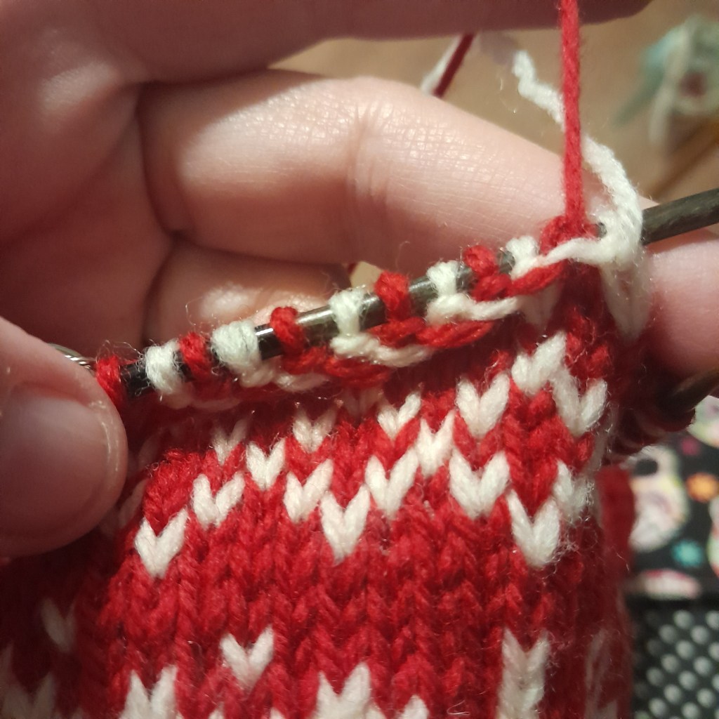 The most recent time I worked a pattern with a Latvian braid is the Christmas stocking I’ve been making. This is a pattern that I tech edited before making it. I chose this pattern because of the plug and play opportunities in the design. Each of the stockings I’ve made are completely different. This pattern has directions for a Latvian braid that are fun and easy. I highly recommend this method and this pattern!