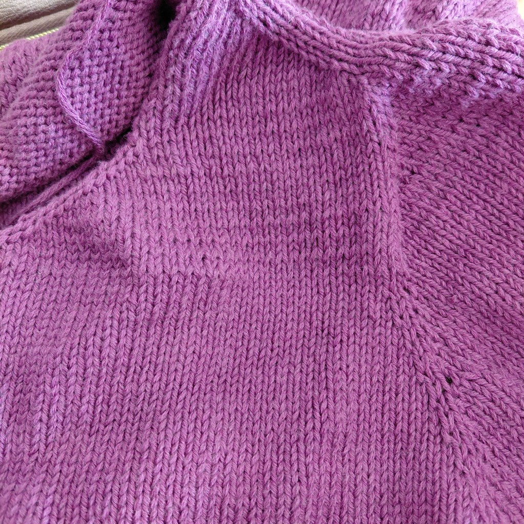 As you can see in the photo below, there is an area towards the top that isn’t as smooth as the part towards the bottom. I would bet that a lot of you have had this experience. I was working a tee from the top down. It began with rows, that’s the uneven part, and then moved into rounds, that’s when things smoothed out, because I was knitting every round, no purling.