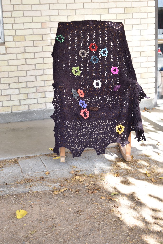 This blanket was inspired by a song from Need to Breathe. One of the lines in the song is “grow Your roses on my barren soul.”