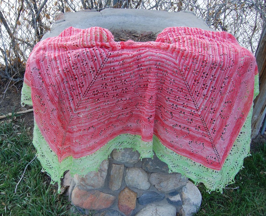 Strawberry Sweetheart is a knit pattern for shawl that can be made in one side.