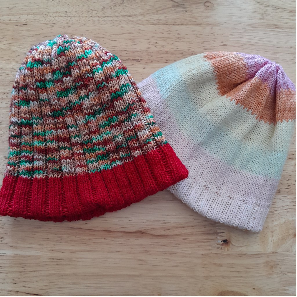 Both hats are made from the cast on out. Each hat uses a different method for casting on but either can be used with either hat.